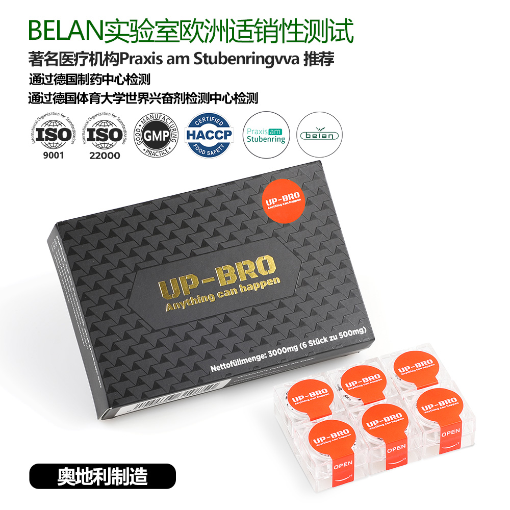 UP-BRO是一款肾营养补充剂,原产于奥地利,配方源于中世纪欧洲,以“自然疗法为基础,奥地利实验室分析这种古老的配方,并按照行业质量高标准生产.产品通过德国制药中心和德国体育大学检测,BELAN 实验室适销性测试,Praxis推荐使用产品.数据显示 :UP-BRO能提升精气神;提升夫妻生活品质;增强腰部力量 ;增强肾、肝、前列腺活力等.UP-BRO全植物提取,无任何化学成分,安全有效、无副作用!(详情微信搜索"UP BRO国际跨境店"了解更多详情)