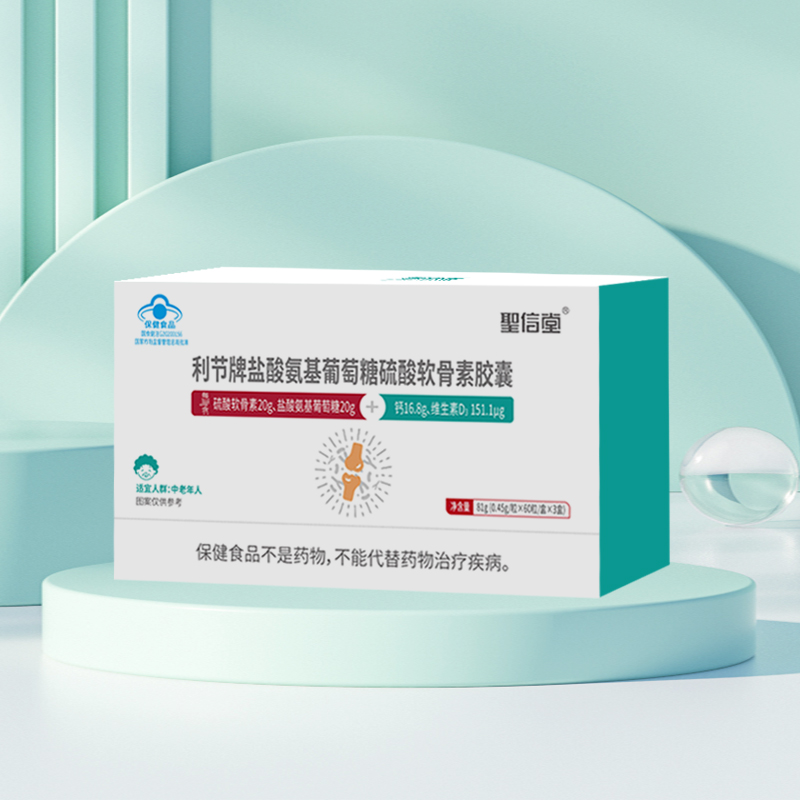 【原料】碳酸钙、硫酸软骨素钠、盐酸氨基葡萄糖、维生素D3 粉(胆钙化醇、辛烯基琥珀酸淀粉钠、抗坏血酸钠、二氧化硅、麦芽糊精、白砂糖、玉米油)