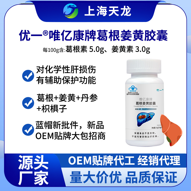 葛根姜黄胶囊对化学性肝损伤有辅助保护功能新品招商OEM贴牌大包