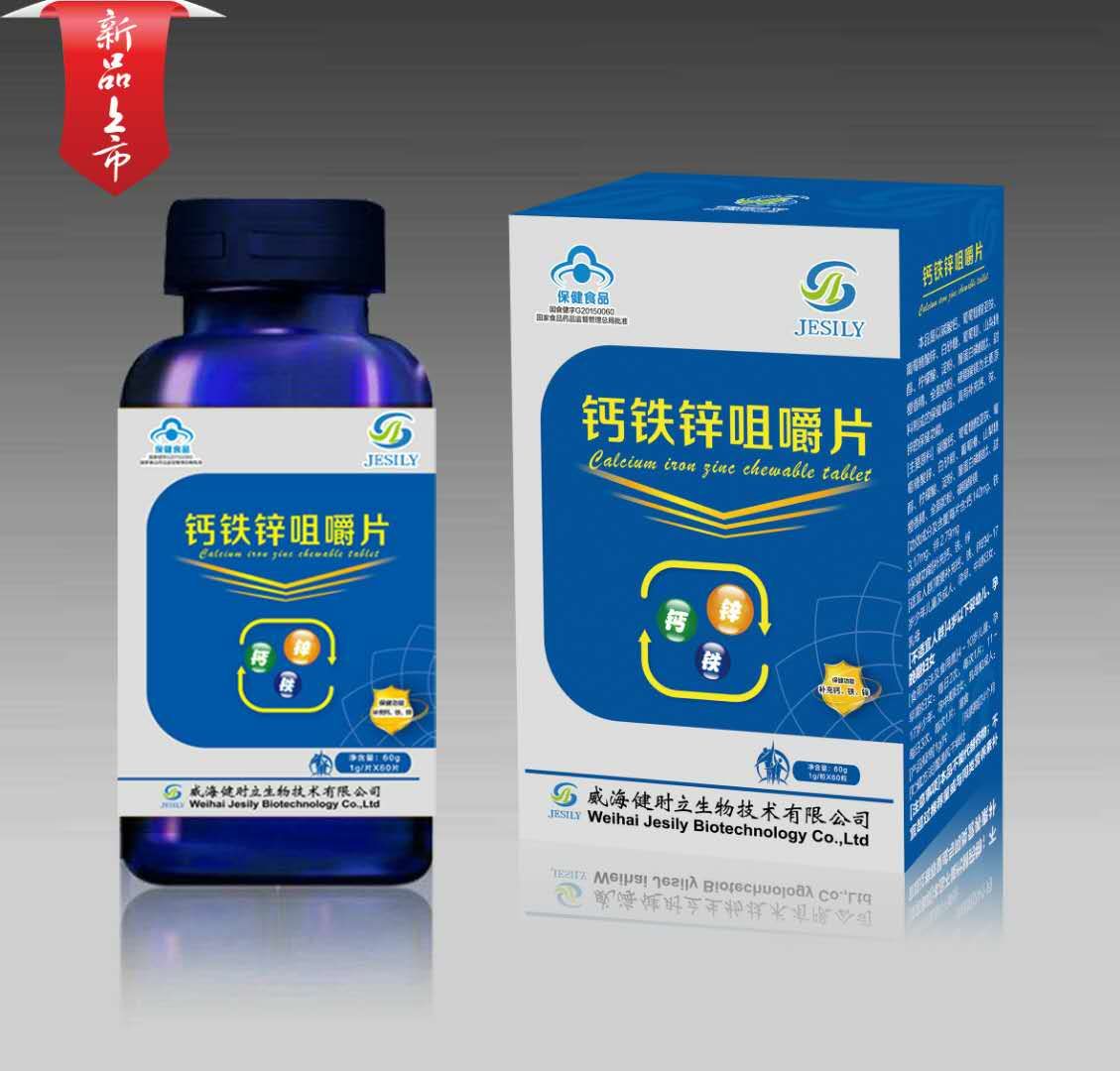 本品是以碳酸钙、葡萄糖酸亚铁、葡萄糖酸锌、白砂糖、葡萄糖、山梨糖醇、柠檬酸、淀粉、酪蛋白磷酸肽、甜橙香精、全脂奶粉、硬脂酸镁为主要原料制成的保健食品,具有补充钙、铁、锌的保健功能.